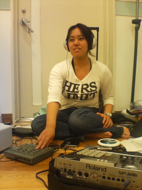 どんなタイミングで、どんな音量の上げ下げで、そんな音をつかうのか。演出の太田さんの指示の元、音効の一ノ宮寛子さん頑張ります。